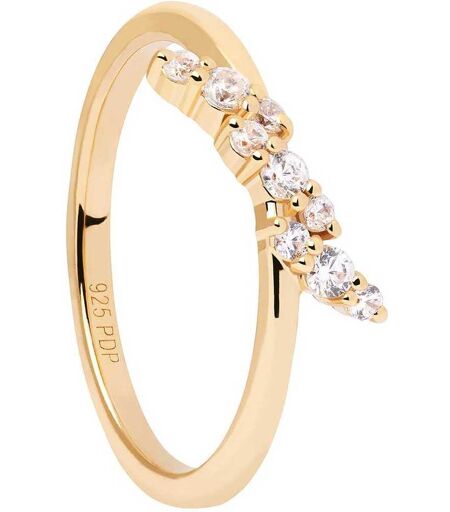 Anello Da Donna Di Pdpaola Della Collezione Essentials Della Linea Natura. Anello Realizzato In Argento Sterling 925 Con Placcatura In Oro 18k Con Zirconi Bianchi. Misura Anello: 16. La Referenza È An01-886-16, Materiale Gioiello: Acciaio, Argento 925, ...