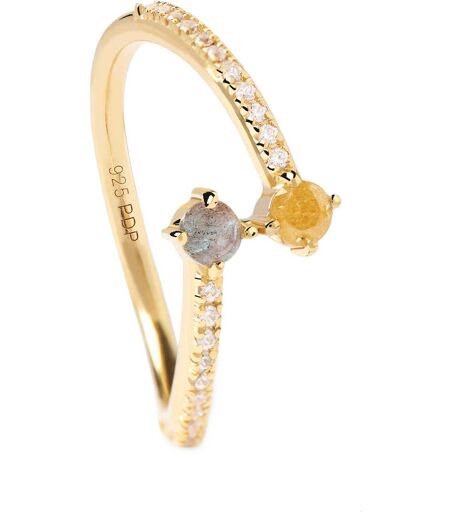 Anello Villa Gold Da Donna Della Collezione Juno Di Pdpaola. Il Gioiello È Realizzato In Argento Sterling 925 Con Rifinitura Placcata In Oro 18k. Le Pietre Sono: Labradorite, Iced Zirconia Gialla, Zirconia Bianca. La Misura È 10. La Referenza È ...