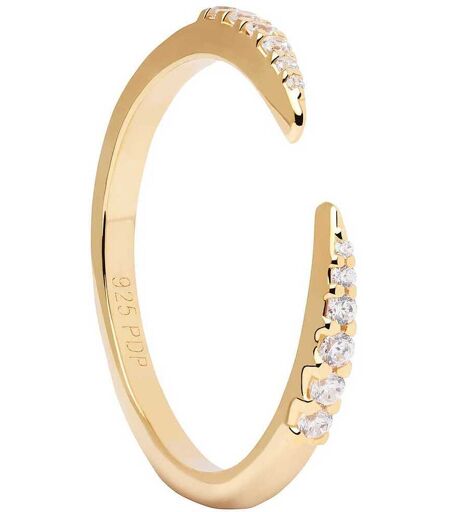 Anello Da Donna Di Pdpaola Della Collezione Essentials Della Linea Stare. Anello Realizzato In Argento Sterling 925 Con Placcatura In Oro 18k Con Zirconi Bianchi. Misura Anello: 16. La Referenza È An01-803-16, Materiale Gioiello: Acciaio, Argento 925, ...