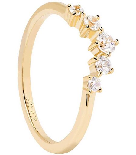 Anello Da Donna Di Pdpaola Della Collezione Essentials Della Linea Ciel. Anello Realizzato In Argento Sterling 925 Con Placcatura In Oro 18k Con Zirconi Bianchi. Misura Anello: 14. La Referenza È An01-823-14, Materiale Gioiello: Acciaio, Argento 925, ...