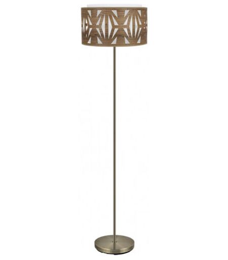 Lampada da terra dede serie da salotto KATERINA in colore NICHEL/LEGNO SCURO. Realizzata in metallo e tessuto, si caratterizza per il design moderno del disegno che crea il suo schermo traforato, risultando una bella composizione per decorare e illuminare qualsiasi ambiente della casa o del luogo di lavoro. Ha una presa E27. La lampadina non è inclusa. Misura 162x40x40 centimetri. In questa stessa serie troviamo i pendenti de 60, 50, 40 e 30 centimetri de diametro, un piede de soggiorno e due modelli de tavolo. Tutti disponibili anche nelle combinazioni di colori de legno chiaro, legno scuro, legno grigio e legno nero. ...