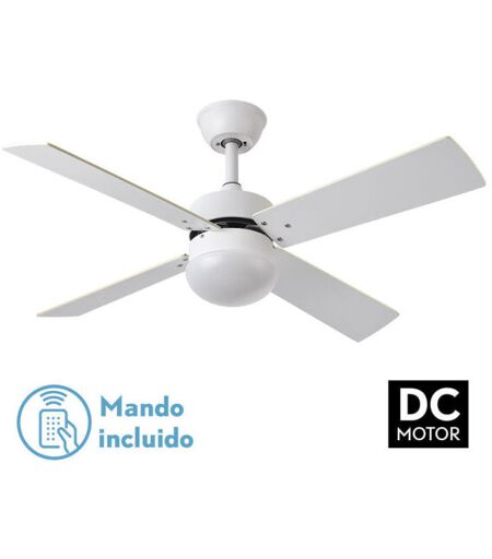 Ventilatore dc serie sofia in metallo e policarbonato con pale in mdf. de colore white con quattro pale reversibili de colore white - faggio e sei velocità. ha una dimensione de 40x107x107 centimetri. viene fornito con due portalampade e27. lampadine non incluse. controllo dell'aria per l'estate o l'inverno. telecomando incluso con timer da 1 a 4 ore. modello disponibile anche in nichel - argento - faggio e in pelle - ciliegio - noce. ...