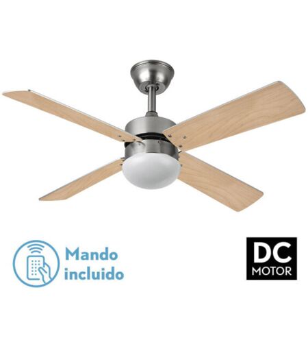 FABRILAMP - Ventilatore dc sofia 2xe27 nickel 4 pale rev.faggio/argento 40x107d con timer remoto