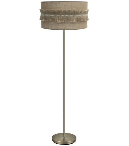 Foot de Hall of the serie KALA de codore di PELLE con tessuto confs ure in tessuto de SACO e corpo in metallo. È dotato di un portalampadaE27. La lampadina non è inclusa. Si distingue per il paralume cilindrico con doppia guarnizione a frange de. Stile molto originale ed elegante, ideale per decorare e illuminare ingressi, salotti, uffici e soggiorni, portando calore all'ambiente che illumina, sia in decorazioni rustiche che classiche o vintage. Le sue dimensioni sono 164x40x40 centimetri. In questa serie troviamo le lampade a sospensionede 60, 50, 40 e 30 centimetri di diametro de, due diverse dimensioni de lampade da tavolo, lampade da parete, lampade da soffitto de 48, 72 e 96 watt e el piede de soggiorno, tutte combinate con tessuto di sacco con nero o pelle. ...