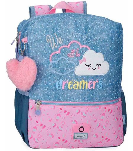 Dreamer di Enso è una collezione colorata che ti invita a dare libero sfogo alla tua immaginazione e a immergerti in un mondo pieno di gioia e divertimento.Con le tonalità predominanti del rosa e del blu, questa collezione si presenta come un´opzione divertente e allegra per le ragazze che desiderano aggiungere un tocco di colore alla propria vita.Questa collezione dai toni vivaci e vivaci si distingue per la sua originalità e la sua capacità di trasmettere l´energia positiva di cui abbiamo bisogno ogni giorno.Ottieni la collezione completa abbinando gli zaini ai loro astucci, alla borsa a tracolla o, quando vai in viaggio, alla collezione ABS coordinata.Non lasciarti sfuggire l´occasione!.- Zaino di 25 cm x 32 cm x 12 cm in poliestere.- Scomparto principale di dimensioni ideali per riporre gli oggetti essenziali per la scuola o gli effetti personali in viaggio.- Tasca frontale con cerniera per un facile accesso agli oggetti più piccoli.- Cinghie regolabili e maniglia per appendere.- Include un pompon decorativo. ...