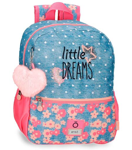 Se tutto ruotasse attorno ai sogni, vivremmo sognando.Se sei una sognatrice e vorresti viaggiare, diventare una dottoressa, una pittrice, una modella o una designer di gioielli, questa è la collezione che meglio si adatta a questo spirito sognante.La nostra ampia varietà di zaini, borse e valigie sarà l´accessorio perfetto per le tue passeggiate, i tuoi viaggi o per la scuola.I nostri zaini Little Dreams per il ritorno a scuola, con un pompon a forma di cuore color pesca, possono essere adattati con un trolley aggiuntivo per una maggiore mobilità.Inoltre, le nostre valigie in ABS per viaggiare con i bambini permetteranno alla più piccola di scegliere quella che più la cattura, così potrà avere il set completo e sentirsi una sognatrice.Non lasciarti sfuggire il tuo migliore alleato per continuare a sognare!.- Zaino di 25 cm x 32 cm x 12 cm, realizzato in poliestere.- Due tasche laterali e una tasca frontale per riporre una borraccia, piccoli accessori e il pranzo.- Spallacci larghi e regolabili che si adattano perfettamente alla schiena.-Il portachiavi con pompon a forma di cuore completa il design. ...