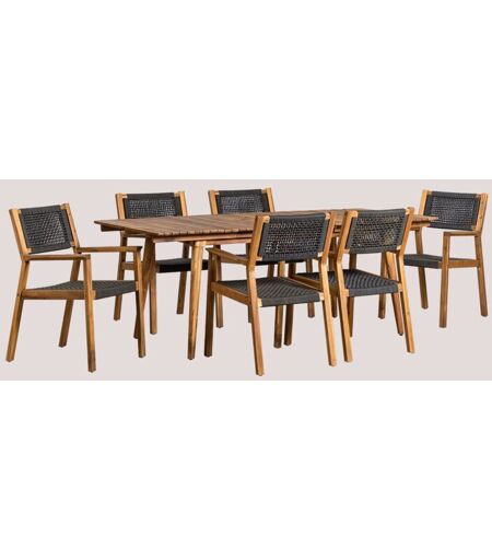 SKLUM - Set Tavolo Rettangolare 160-210x90 cm allungabile e 6 sedie da pranzo con braccioli in legno di acacia Tenay