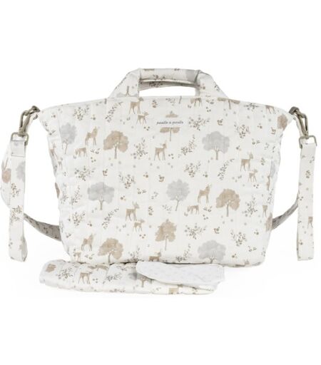 La borsa fasciatoio Nara di Pasito a Pasito è un modello unico, realizzato in 100% cotone canvas con una delicata stampa di cervi e alberi in tonalità neutre. Il trattamento impermeabile la rende resistente all'acqua, garantendo protezione e durata nell'uso quotidiano. È un design elegante e pratico, con un'ampia capacità che permette di portare con sé tutto il necessario. Dispone di un doppio manico, uno lungo per portarla a spalla e due più corti per il trasporto a mano, oltre a cinghie universali aggiuntive per agganciarla al passeggino. La qualità delle finiture è impeccabile, con un rivestimento interno e tasche organizzate per biberon, posate, salviette, pannolini, creme e qualsiasi altro accessorio indispensabile per il bambino. Tra i vari scomparti, è presente una tasca termica per biberon e una tasca impermeabile per riporre indumenti bagnati. Inoltre, include un pratico fasciatoio. Si può lavare sia a mano che in lavatrice fino a una temperatura di 30º. Dimensioni: 37x30x12 cm. ...