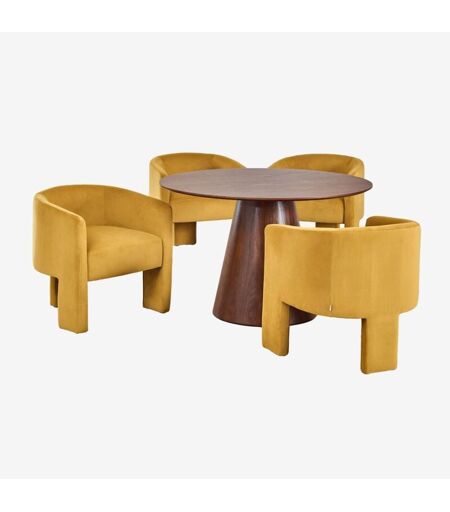 SKLUM Set tavolo rotondo Aura impiallacciato in noce (Ø120 cm) e 4 sedie da pranzo Xastru in velluto