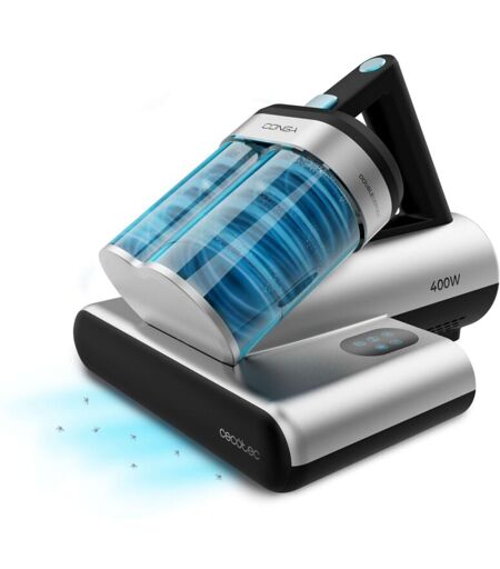 Cecotec Aspiratore per materassi e tappezzeria con potenza di 400 W e potenza di aspirazione di 13 kPa. Include una luce ultravioletta UV-C che uccide fino al 99,9% degli allergeni. La tecnologia a spazzole motorizzate aiuta a rimuovere gli acari della polvere dai materassi e la tecnologia ad aria calda disinfetta. Doppio serbatoio ...