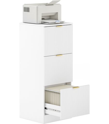 Homcom Cassettiera da Scrivania con 3 Cassetti Frontali Scanalati Mobile Archivio per Formato A4 o Lettera 40x40x101 cm Bianco Aosom Italy