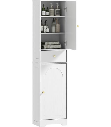 Homcom Armadietto Alto da Bagno Stretto con 2 Porte Arco Cassetto e Ripiani Regolabili Moderno 40x29,5x170 cm Bianco Veteado Aosom Italy