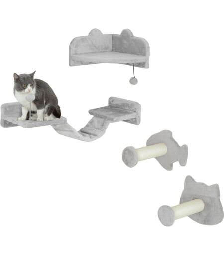 Trasforma la tua casa in un autentico paradiso per gatti con questo set di arrampicata per gatti di PawHut. Questo insieme include quattro pezzi con comodi gradini, una piattaforma doppia con scale e una piattaforma d'angolo per salti. Realizzato in truciolato di legno con rivestimento in peluche. Queste mensole da parete per gatti non solo risparmiano spazio, ma stimolano anche l'istinto naturale di arrampicarsi del tuo gatto, essendo il complemento perfetto per l'arredamento felino della tua casa. ...