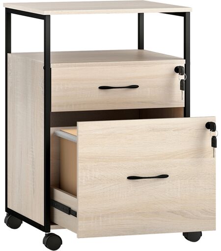 Vinsetto Cassettiera per Scrivania con 2 Cassetti e Ruote, per Formato Lettera A4 44x40x66,5 cm, Legno Aosom Italy