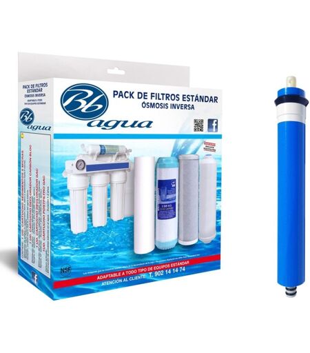 BBAGUA Membrana da 50 gpd + Confezione da 4 filtri Standard. 1 filtro a sedimenti, 1 filtro a carbone gac, 1 filtro a carbone a blocchi e 1 post filtro in