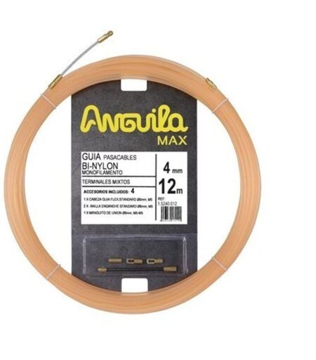 Passacavo in By-Nylon monofilo Ø 4 mm, lungo 12 metri, colore salmone, provvisto di terminali misti e accessori in dotazione: testa guida flessibile a trazione fissa Ø 8 mm Ø, testa guida flessibile standard, due anelli di aggancio e un nipplo. Il By-Nylon è un materiale con un comportamento all'attrito migliore rispetto al Nylon, anche se in origine acquisisce una forma a spirale, motivo per cui esercita una forza di spinta inferiore, e il suo utilizzo non è consigliabile a distanze superiori a 20 o 25 metri. ...