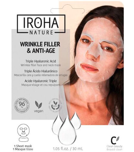 IROHA Wrinkle Filler & Anti-Age Mask fornisce un'idratazione profonda a più strati della pelle. Riempie le linee sottili e le rughe e aiuta a uniformare il tono della pelle. Rassoda e rinforza la pelleNessun allergene Morbido sulla pelle: Morbido e confortevole sulla pelle, grazie alle sue fibre rotonde e di dimensioni uniformi. Tessuto antibatterico: Inibisce l'attività dei batteri e la loro crescita. Ventilazione della pelle: il tessuto a rete permette alla pelle di respirare e riduce il rischio di acne. Ingredienti principali: L'acido ialuronico ad alto peso molecolare aiuta a idratare e levigare lo strato superiore della pelle.L'acido ialuronico a medio peso molecolare aiuta a idratare profondamente la pelle.L'acido ialuronico a basso peso molecolare può agire come un filler per le rughe assorbendo l'acqua, riempiendo linee sottili e rughe. Applicazione: Srotolare la maschera e metterla sul viso pulito. Rimuovere la maschera dopo 15 minuti. Massaggiare delicatamente il siero rimanente fino al suo completo assorbimento da parte della pelle, non risciacquare. FREQUENZA: almeno 1 volta alla settimana. ...