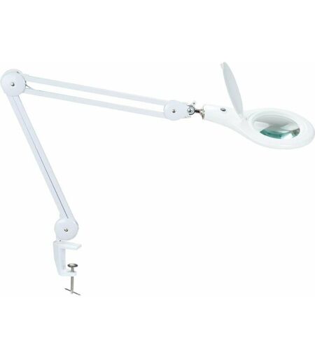 Lampada d'ingrandimento a LED 56Leds BIANCO (5 diotrie) Alimentazione 110-240Vac Ingrandimento x2,25x, 5 diottrie Colore Bianco Dia. Illuminazione 56 LED bianchi ad alta luminosità Obiettivo Crista circolare di 127 mm di diametro Lumen 600lm Potenza 9W Tipo Lente d'ingrandimento da tavolo con clip di presa e LED ...