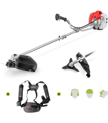 GREENCUT Decespugliatore con motore a benzina 2 tempi 65cc 4.9cv, 2 accessori per il taglio, manubrio a doppia impugnatura, regolatore di potenza, imbracatura
