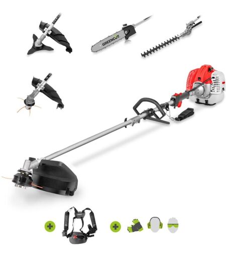 GREENCUT Utensile multifunzione GM650X-5 con motore a benzina 2 tempi 65cc 4,9cv. 5 diversi accessori per il taglio. Manubrio a doppia impugnatura.