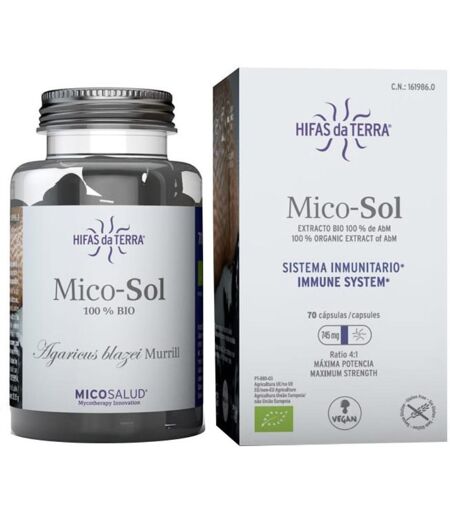 MICOSALUD Mico - Sol Il prodotto favorisce le naturali difese dell'organismo e il metabolismo dei carboidrati. Ingredienti Agaricus brasiliensis L. (Agaricus blazei Murrill) estratto standardizzato: 618 mg Capsula di cellulosa vegetale. Avvertenze Non eccedere la dose giornaliera consigliata. Tener… ...