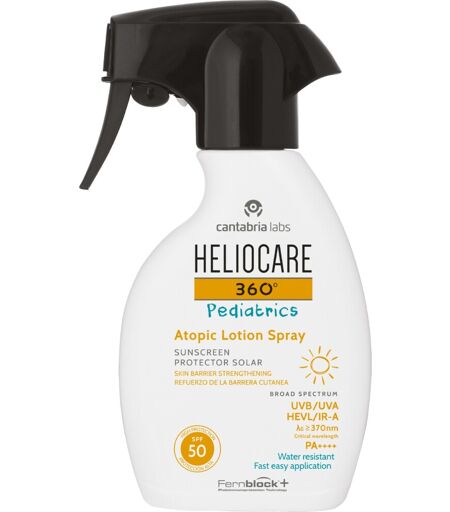 HELIOCARE 360 PEDIATRICS ATOPIC LOTION SPRAY SPF 50 - Descrizione Lozione fluida in spray ultra leggera e dal rapido assorbimento, adatto alla pelle sensibile e atopica di neonati e bambini, a partire dai 3 mesi di vita. Fotoprotezione in lozione spray con SPF 50. Garantisce una protezione ad ampio… ...