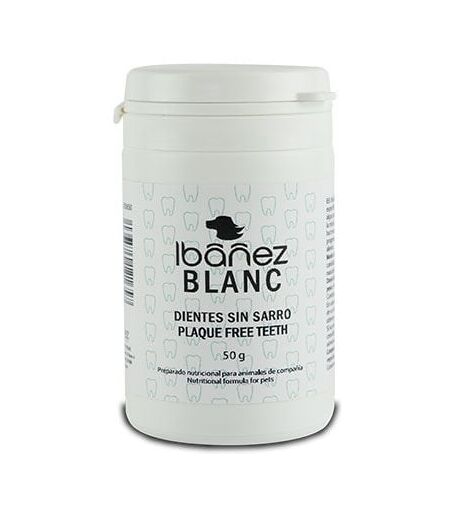 Ibáñez Blanc è un preparato nutrizionale specifico per cani che previene la comparsa del tartaro e facilita la progressiva eliminazione del tartaro esistente e dell'alito cattivo . La sua composizione naturale combina alghe brune ed estratti di piante che favoriscono la riduzione della placca batterica. Raccomandato dai veterinari. Indispensabile per i cani anziani che, a causa del pericolo di anestesia, non possono essere puliti. La quantità appropriata viene aggiunta ai pasti in base al peso dell'animale. Dose giornaliera raccomandata per ogni 6 kg di peso: un cucchiaino da tè (1/2 g). Contiene un misurino all'interno. In casi molto estremi, e sotto la supervisione del veterinario, è possibile raddoppiare la dose per ottenere risultati più rapidi. Per accelerare la caduta del tartaro precedente, è consigliabile, durante il trattamento, che il cane abbia giocattoli come un nodo o un osso per la pulizia. Contenuto: 50 g. ...