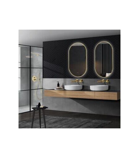 Specchio ellittico, modello Tokyo dal design moderno, minimalista ed elegante. La sua luce integrata garantisce praticità e comfort durante l'utilizzo. Lo specchio non si appanna e sarà sempre pulito grazie al suo sistema antiappannamento. L'alimentatore ha un livello di protezione IP44, che lo rende impermeabile e, quindi, ideale per il posizionamento in bagno. Il pre-telaio in alluminio spazzolato color oro assorbirà il calore emesso dai LED. Il doppio sensore permette l'accensione della luce e l'antiappannamento. Lo specchio ha uno spessore di 5 mm ed è molto sicuro e resistente grazie alla sua tecnologia antiscoppio. Ha le seguenti misure: 50 cm di larghezza x 90 cm di altezza. E' possibile cambiare la tonalità della luce: Le tonalità tra cui è possibile scegliere sono una luce calda di 3000 K, una luce neutra di 4000 K e una luce fredda di 6500 K. ...