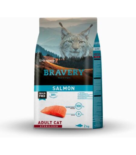 BRAVERY GATTO ADULTO STERILIZZATO SALMONE 2 KG *** TEMPORANEAMENTE MANCANTE DALL'AZIENDA PRODUTTRICE *** ...
