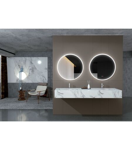 Specchio rotondo con cornice in acrilico completamente illuminata che fornisce una maggiore quantità di luce ed è appositamente progettato per bagni con scarsa illuminazione. Incorpora un doppio sensore on/off e antiappannamento. Misura 80 cm di diametro Disponibile in tre tipologie di luce (3.000k calda, 4.000k neutra e 6.500k fredda). ...
