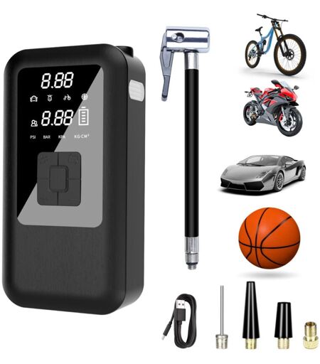 LONGZIMING Mini pompa elettrica da 6000 mAh, compressore d'aria portatile, gonfiatore per pneumatici senza fili, 150 PSI, 4 modalità, con display digitale, luce