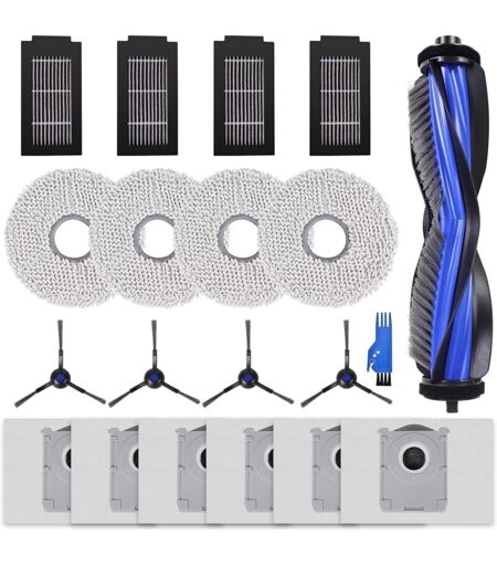 Accessori T50 per aspirapolvere Ecovacs Deebot T50 Pro Omni/T50 Omni/T50, 1 spazzola principale, 4 panni, 4 spazzole laterali, 4 filtri HEPA, 6 sacchetti per aspirapolvere, 1 strumento di pulizia Caratteristiche: Adattamento perfetto: Accessori di ricambio compatibili con gli aspirapolvere robot Ecovacs Deebot T50 Pro Omni / T50 Omni / T50. La confezione contiene 1 spazzola principale, 4 panni per mocio, 4 spazzole laterali, 4 filtri HEPA, 6 sacchetti di ricambio e 1 accessorio per la pulizia. I prodotti sono realizzati con materiali ad alta resistenza per prestazioni ottimali e uno stile di vita più sano. Questo kit funziona bene come gli originali, con una vestibilità precisa e una facile installazione. Si prega di confermare il modello prima dell'acquisto. Si prega di notare che non è compatibile con il T50 Max Pro. Spazzola principale e spazzole laterali di alta qualità: la spazzola principale in gomma ABS rimovibile può essere regolata per ruotare e raccogliere la polvere nel ...