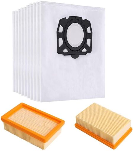 LONGZIMING 10 pezzi Sacchetti per aspirapolvere per Karcher WD4 WD5 WD6 MV4 MV5 MV6 con 2 filtri per Karcher 2.863-005.0 WD4 WD5