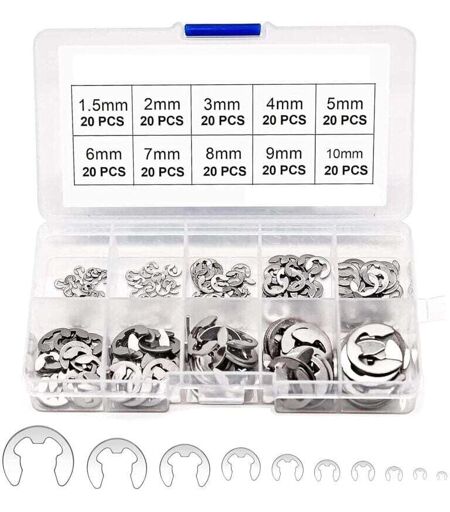 LONGZIMING - 200 anelli di sicurezza esterni E-Clips, anelli elastici interni, anello elastico interno, anello E-Clip, kit assortimento anelli