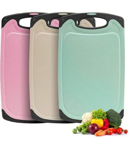 LONGZIMING - Tagliere, set di 3 taglieri in plastica antiscivolo con manico e scanalatura per il succo, taglieri da cucina antibatterici e senza bpa