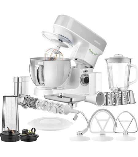 Sencor Robot da Cucina Multifunzione, Planetaria Potente 1200W, Accessori Completi, Ciotola Acciaio 5L, Illuminazione led, Frullatore, Tritacarne, Cookie
