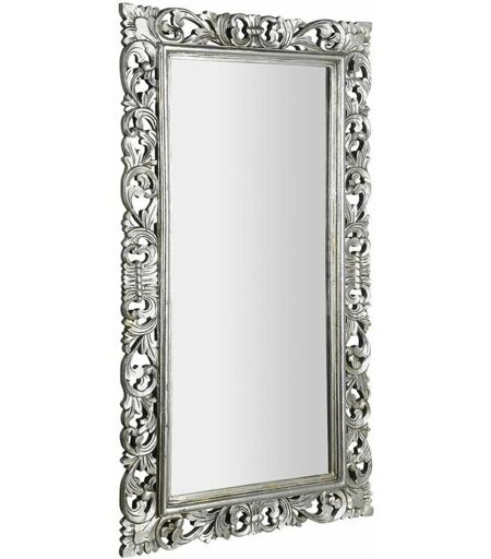 Specchio con cornice in legno intagliato a mano colore montatura argento materiale legno massello con decorazioni decorative dimensione complessiva dello specchio 800 x 1500 mm larghezza telaio 140 mm stile glamour ...