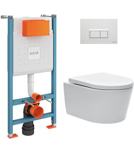 Vitra Confezione per wc Bati-support V-Fix Core + wc senza flangia sat con fissaggi invisibili + placca, bianco lucido (V-FixSATrimles -