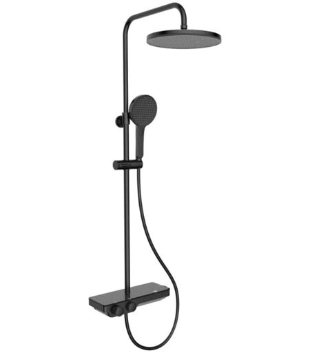 SWISS AQUA TECHNOLOGIES Colonna doccia + miscelatore termostatico + soffione + doccetta a tre getti + mensola, nero opaco (satss -
