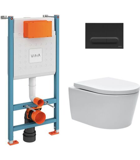 Vitra Pacchetto per wc Bati-support V-Fix Core + wc senza flangia sat con fissaggi invisibili + placca nera opaca (V-FixSATrimless-6) -