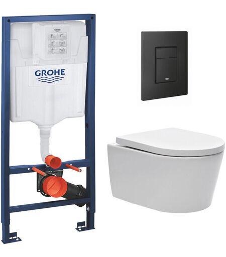 Grohe Set di toilette Rapid sl + vaso flangiato Swiss Aqua Technologies + pannello di controllo nero opaco (RapidSL-SATrimless-KF0) -
