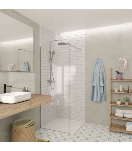 SWISS AQUA TECHNOLOGIES - Porta doccia Walk-In Parete in vetro 70x200cm 8 mm anticalcare Crystal Glass®, con bracci e profili cromati lucidi