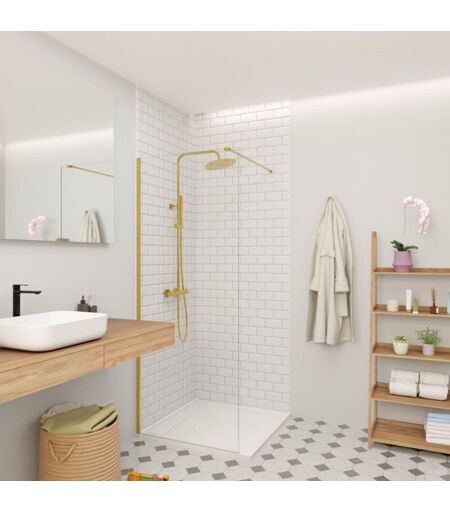 SWISS AQUA TECHNOLOGIES Porta doccia Walk-in 70x200cm 8 mm anticalcare Crystal Glass®, con bracci e profili dorati (SATBWI70PRZ) -