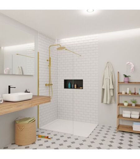SWISS AQUA TECHNOLOGIES Porta doccia Walk-in 90x200cm 8 mm anticalcare Crystal Glass®, con bracci e profili dorati (SATBWI90PRZ) -