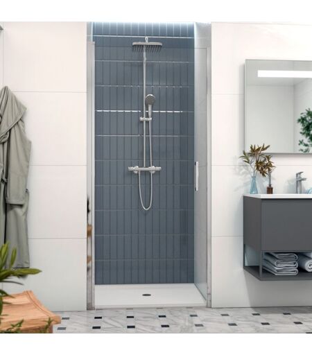 SWISS AQUA TECHNOLOGIES Porta doccia battente anticalcare Fusion 90x195cm con profilo cromato lucido (SATFUD90NIKA-SET) -