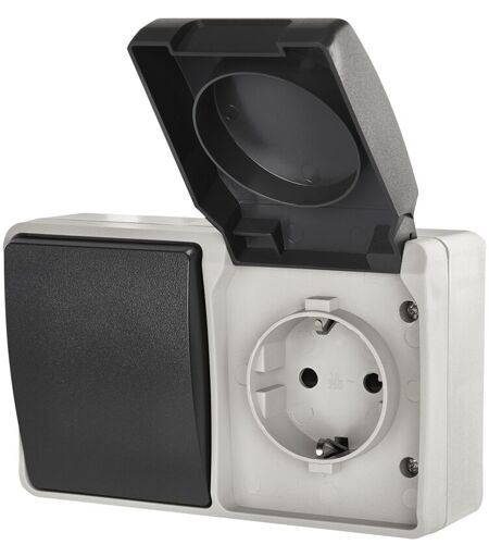 EMOS Interruttore e presa con contatto di protezione, combinazione presa Schuko e interruttore singolo per montaggio a parete, IP44 per ambienti umidi ed