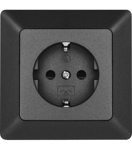 Descrizione Presa Schuko nera di EMOS con maggiore protezione tattile e contatto di terra laterale per montaggio a incasso. Senza scatola di montaggio. ...