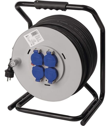 EMOS P19221 Avvolgicavo 50m-4 Prese Schuko-Impermeabile, Urti, Resistente alle temperature-230 v, 15 a, 3500 W-Isolamento in gomma-H05RR-F 2,5 mm2-IP44