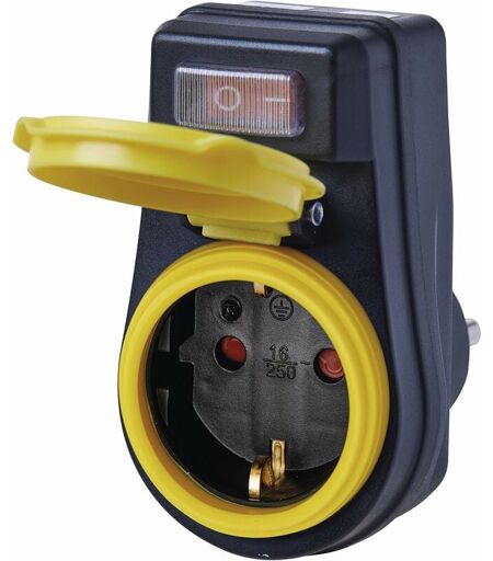 EMOS P00292 Presa Interruttore, IP44, Adattatore Schuko Impermeabile con Cappuccio di Protezione per Esterni, Nero -