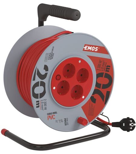 EMOS - Bobina per cavo con 4 prese, 20 m, 3 x 1 Schuko, DG-4ZR-DB04 1000144.30HJR-4AC